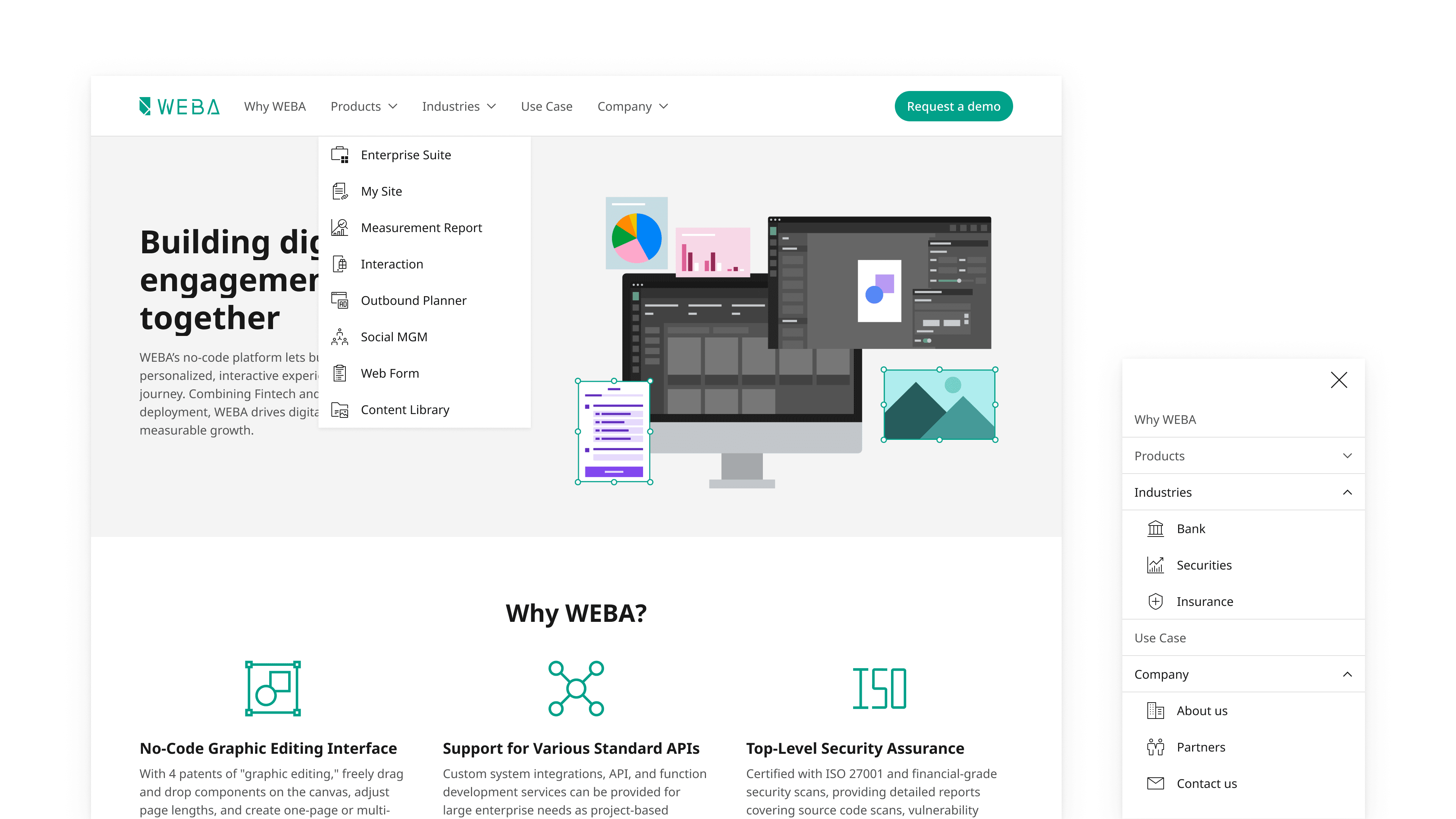 WEBA is a Martech platform that provides enterprise-level solutions across industries such as finance and insurance. As the product ecosystem expanded, the original website struggled to clearly communicate its value and structure.