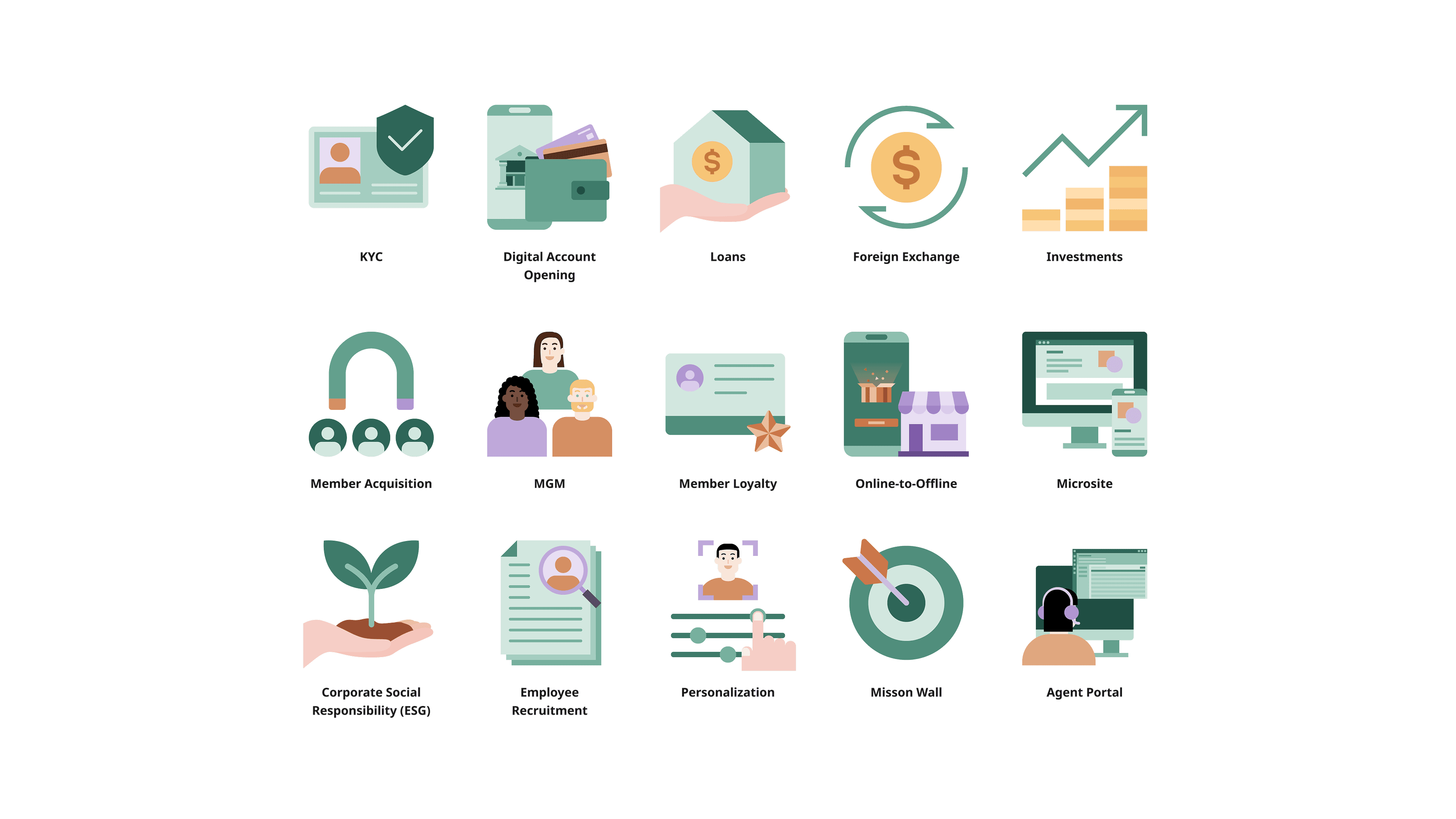 To better communicate different use cases, a set of illustrations was designed to visually represent key scenarios across the platform. Each visual corresponds to a specific context, such as onboarding, personalization, or customer engagement, helping users quickly grasp how the product can be applied.