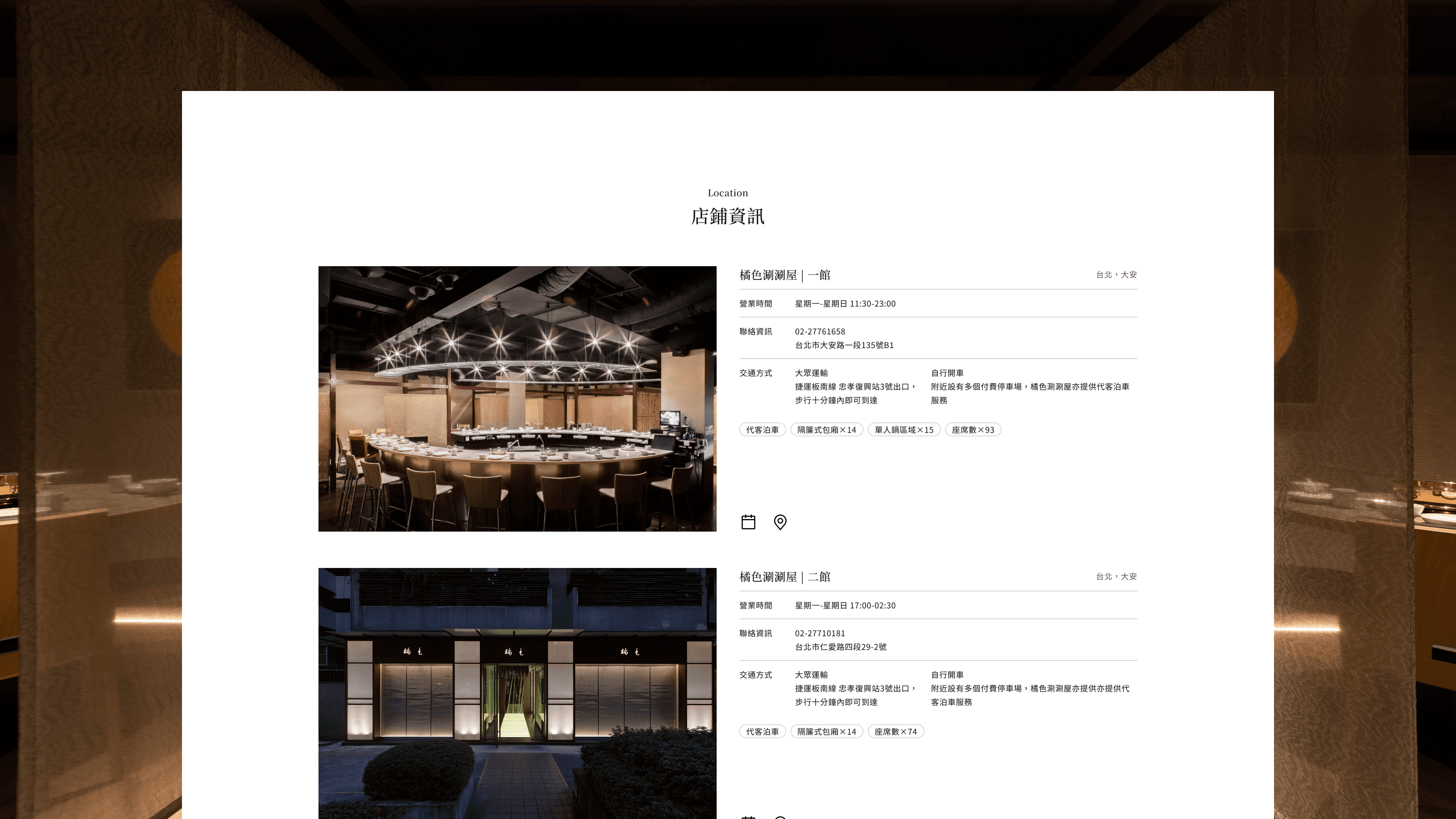 To maximize search efficiency, we established a structured information system within each brand sub-page, allowing users to quickly access menus and comprehensive location guides. The design modularizes complex service offerings such as dining and SPA treatments, pairing high-quality craftsmanship photography with clear pricing tables to create an intuitive browsing experience. Simultaneously, store details are organized into intuitive modules that clearly list operating hours, branch navigation, and transportation guides, ensuring a seamless and accessible journey from online brand discovery to offline physical visits.